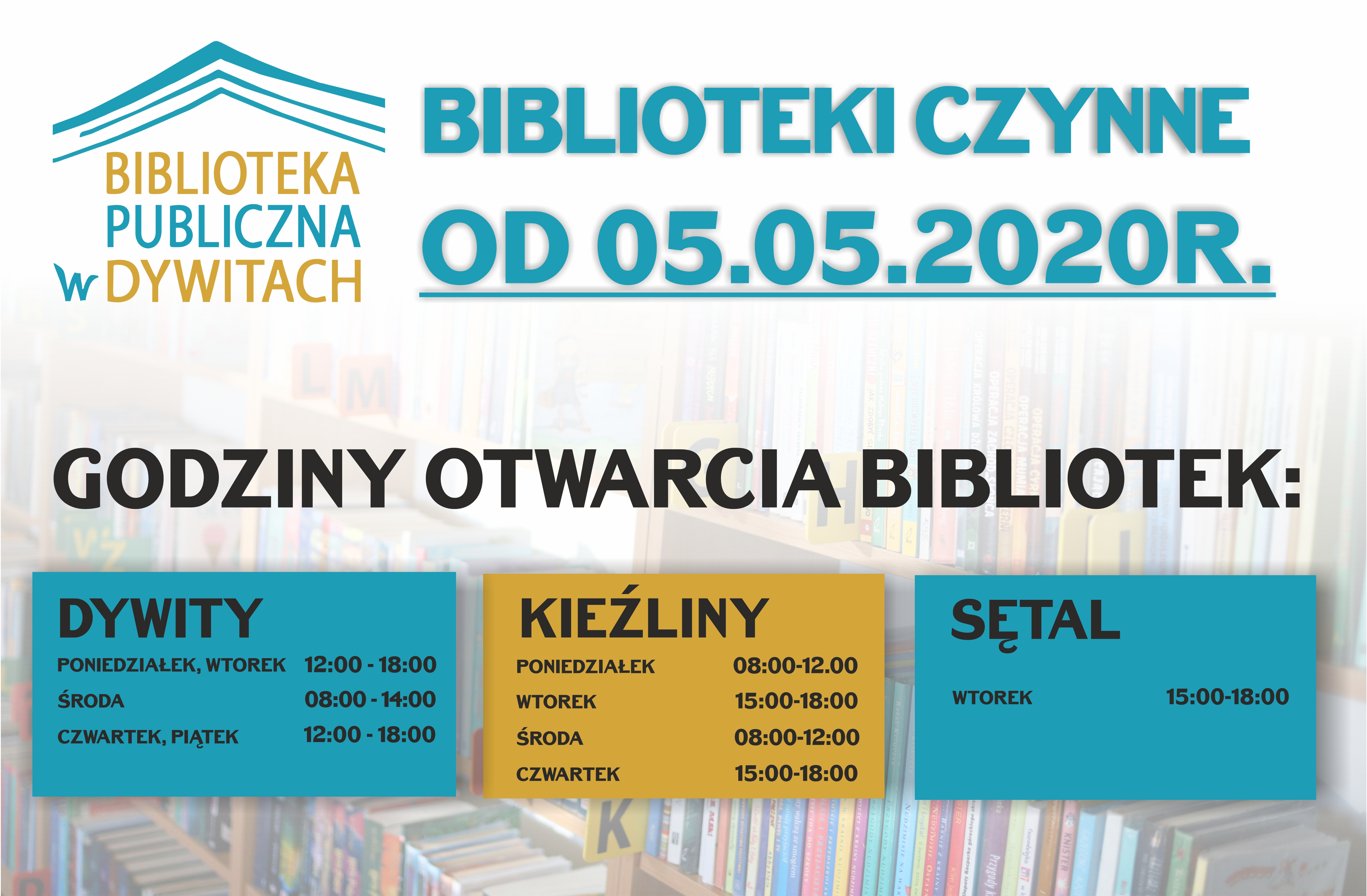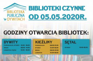 od dnia 5 maja 2020r. ruszają Biblioteki w Gminie Dywity.