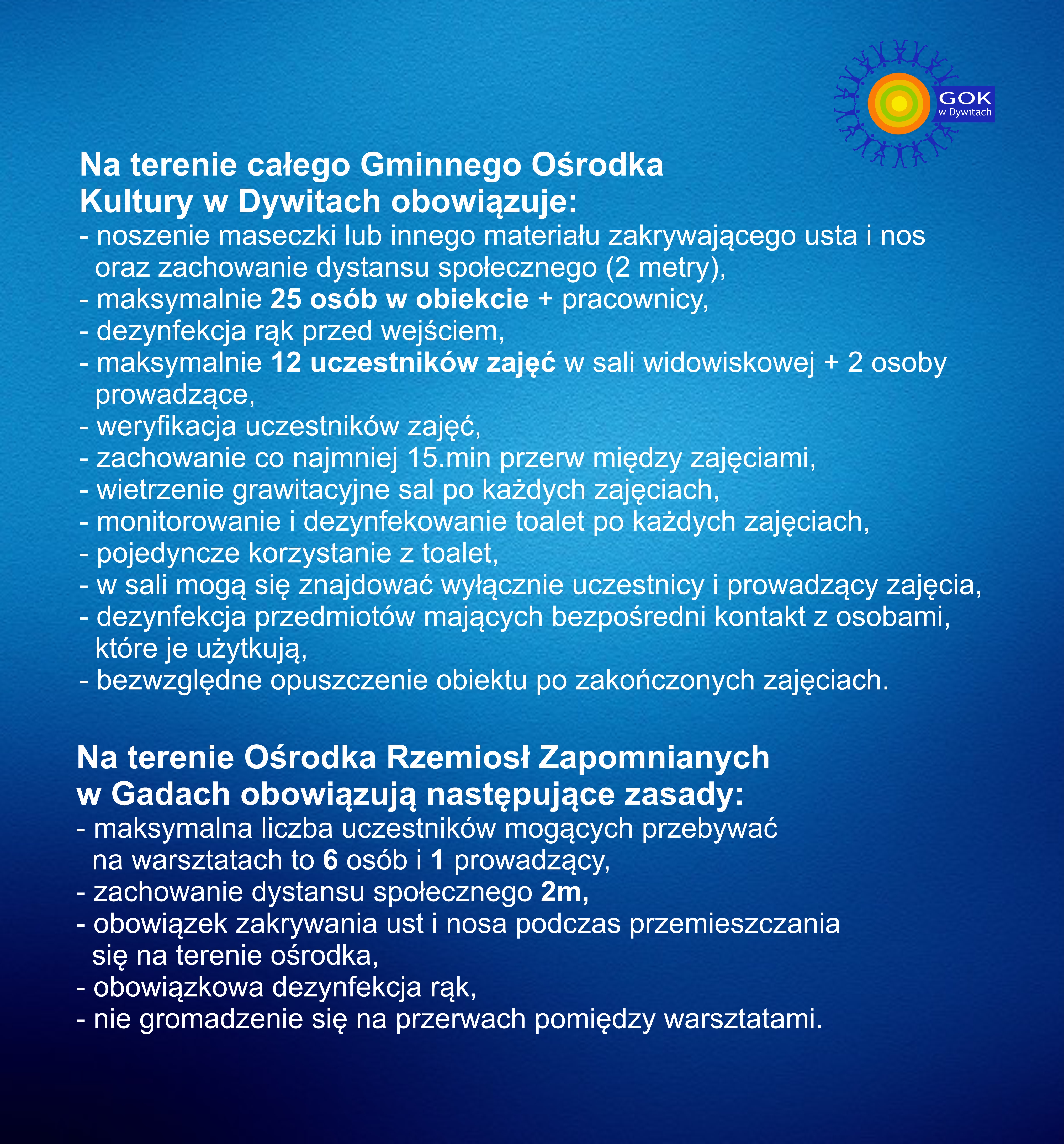 Z radością informujemy o wznowieniu działalności Gminnego Ośrodka Kultury w Dywitach oraz pracowni ceramicznej w Ośrodku Rzemiosł Zapomnianych w Gadach.