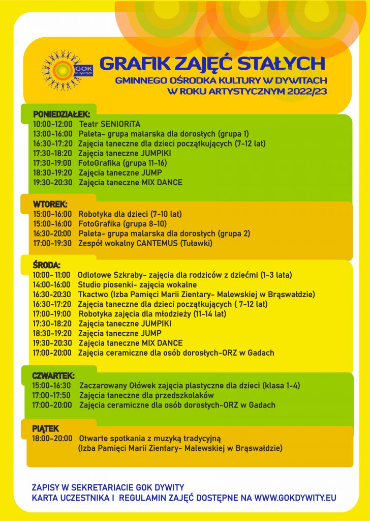 Nowy grafik zajęć GOK Dywity