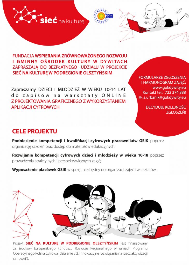 Dotarły do nas również zaświadczenia dla uczestników warsztatów projektowania graficznego – zapraszamy po odbiór zaświadczeń do GOK Dywity.